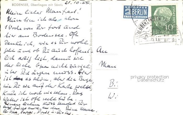 72312784 alte Postkarte ueberlingen Bodensee Kirche mit Saentis postalisch gelaufen Erhaltung siehe scans KatCode: 11110008435059