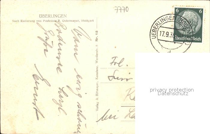 31821683 alte Postkarte ueberlingen Bodensee Kirchenpartie Radierung R. Ostermayer postalisch gelaufen Erhaltung siehe scans KatCode: 11110008435059