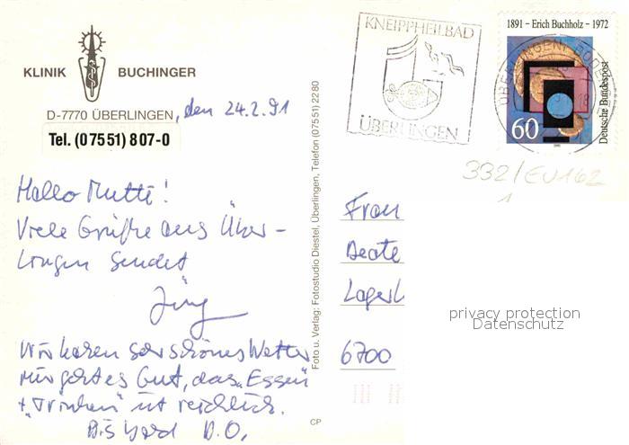 72781836 alte Postkarte ueberlingen Bodensee Klinik Buchinger postalisch gelaufen Erhaltung siehe scans [FriedD77] KatCode: 11110008435059
