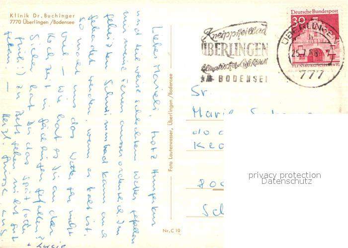 72654527 alte Postkarte ueberlingen Bodensee Klinik Dr Buchinger Swimming Pool Wassertreten postalisch gelaufen Erhaltung siehe scans [FriedD77] KatCode: 11110008435059