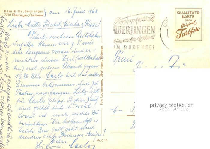 73123085 alte Postkarte ueberlingen Bodensee Klinik Dr Buchinger postalisch gelaufen Erhaltung siehe scans [KathaD81] KatCode: 11110008435059