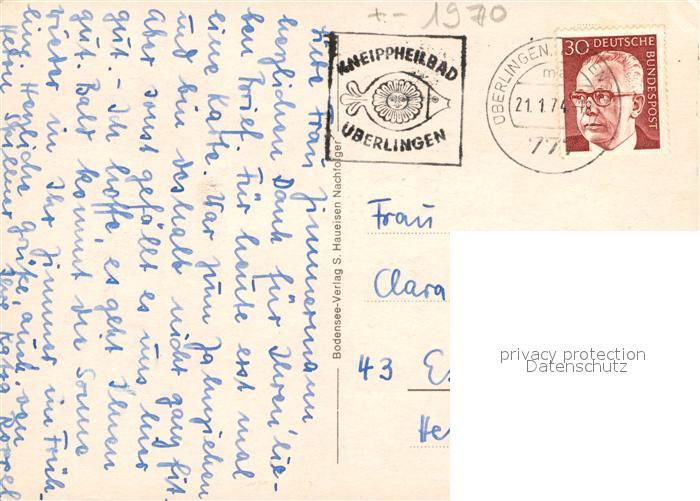 73063018 alte Postkarte ueberlingen Bodensee Kurpark Kirche Panorama postalisch gelaufen Erhaltung siehe scans [FriedD77] KatCode: 11110008435059