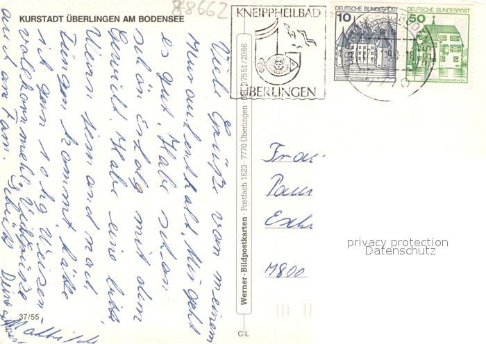 73685725 alte Postkarte ueberlingen Bodensee Kurstadt Blick ueber den Bodensee zu den Alpen Fliegeraufnahme postalisch gelaufen Erhaltung siehe scans [FriedD77] KatCode: 11110008435059
