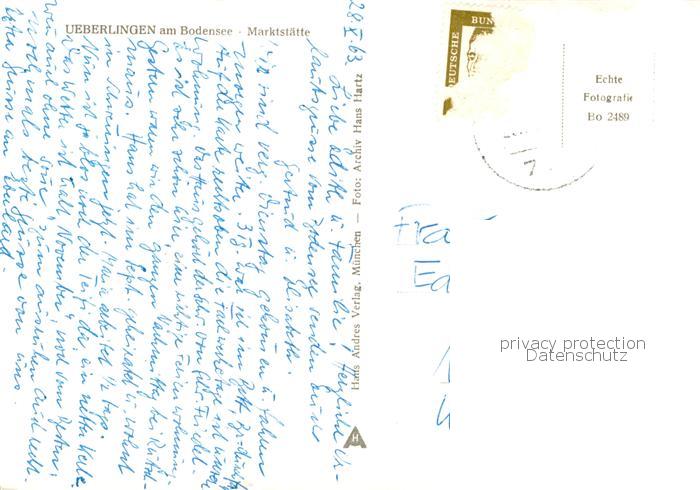 73832024 alte Postkarte ueberlingen Bodensee Marktplatz mit Brunnen postalisch gelaufen Erhaltung siehe scans [WerneD78] KatCode: 11110008435059
