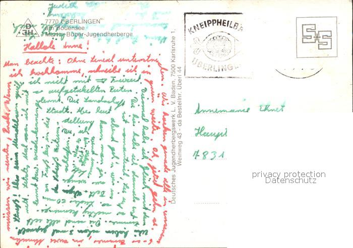 alte Postkarte ueberlingen Bodensee Martin Buber Jugendherberge postalisch gelaufen Erhaltung siehe scans