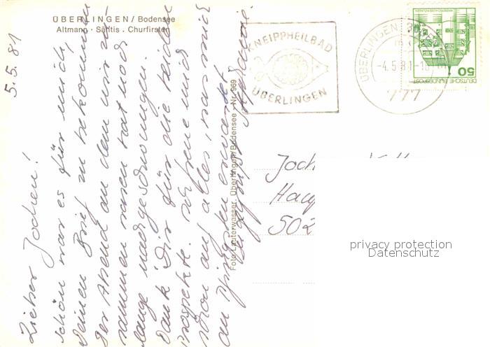 72771181 alte Postkarte ueberlingen Bodensee mit Altmann Saentis Churfirsten postalisch gelaufen Erhaltung siehe scans [WerneD78] KatCode: 11110008435059