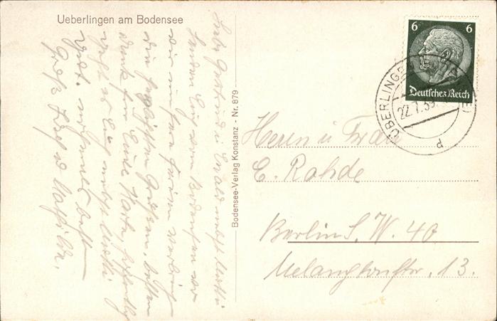 71495693 alte Postkarte ueberlingen Bodensee Panorama am See mit Alpen Kuenstlerkarte postalisch gelaufen KatCode: 11110008435059