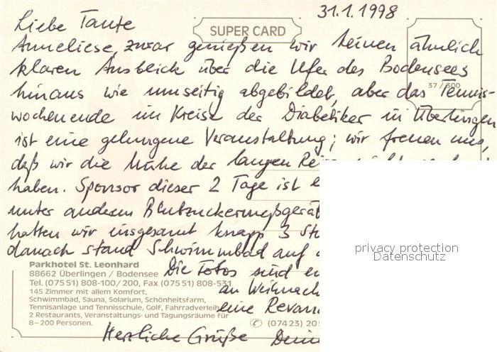 73744814 ueberlingen Bodensee Parkhotel St Leonhard postalisch nicht gelaufen Erhaltung siehe scans [FriedD77] KatCode: 11110008435059