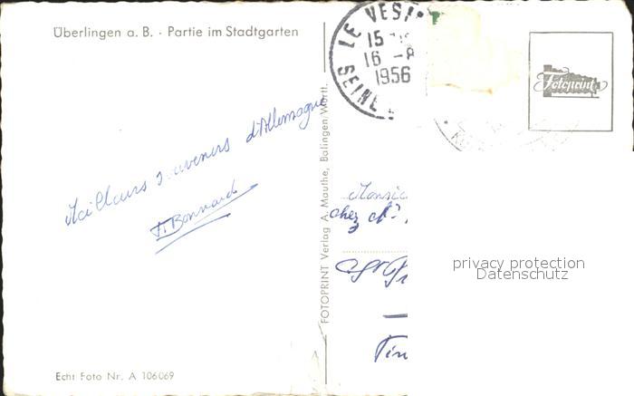 72163939 alte Postkarte ueberlingen Bodensee Partie im Stadtgarten postalisch gelaufen Erhaltung siehe scans KatCode: 11110008435059