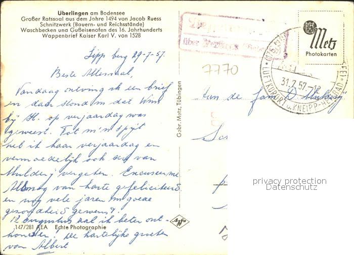 72024171 alte Postkarte ueberlingen Bodensee Ratssaal postalisch gelaufen Erhaltung siehe scans KatCode: 11110008435059