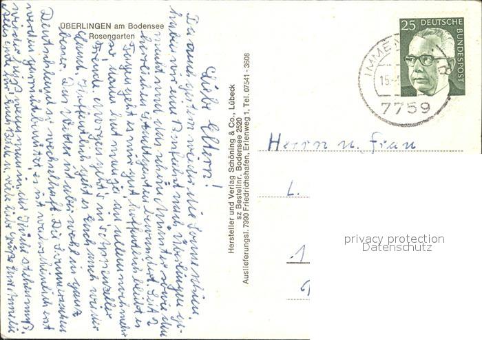 72530076 alte Postkarte ueberlingen Bodensee Rosengarten postalisch gelaufen Erhaltung siehe scans KatCode: 11110008435059