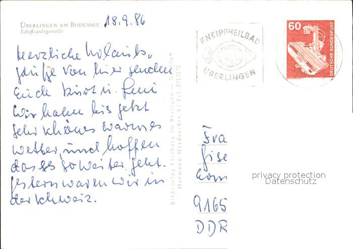 72512602 alte Postkarte ueberlingen Bodensee Schiffsanlegestelle Bodenseefaehre postalisch gelaufen Erhaltung siehe scans KatCode: 11110008435059