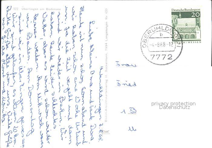 72613731 alte Postkarte ueberlingen Bodensee Stadtgarten Rathaus Muenster Franziskanertor Schiffsanlegestelle Bananenstauden postalisch gelaufen Erhaltung siehe scans [WerneD78] KatCode: 11110008435059