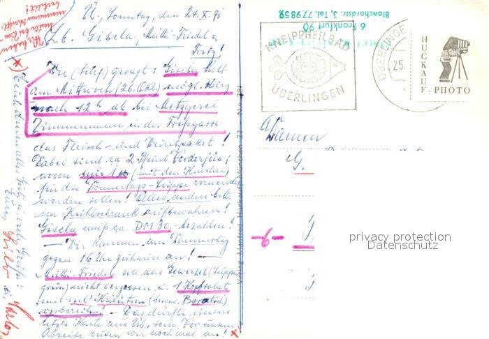 73123078 alte Postkarte ueberlingen Bodensee ueberlinger Trachten Kurhalle Rathaus Muenster Segelregatta postalisch gelaufen Erhaltung siehe scans [KathaD81] KatCode: 11110008435059