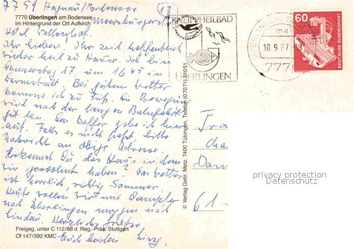 72794827 alte Postkarte ueberlingen Bodensee Uferpromenade Altstadt Aufkirch Fliegeraufnahme postalisch gelaufen Erhaltung siehe scans [FriedD77] KatCode: 11110008435059