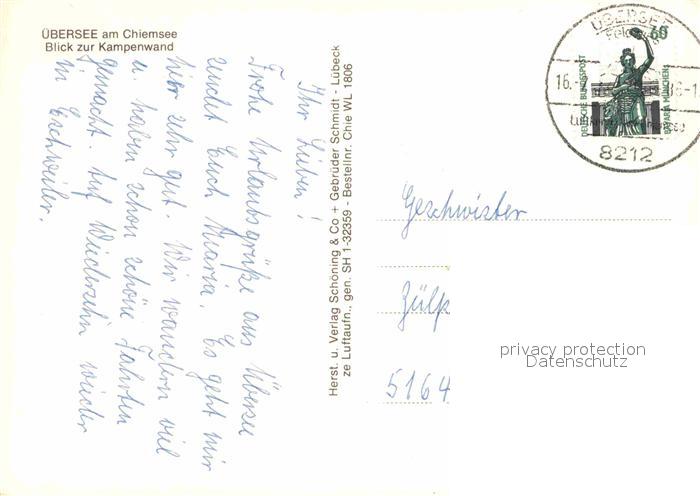 72864932 alte Postkarte uebersee Fliegeraufnahme Chiemsee Kampenwand postalisch gelaufen Erhaltung siehe scans [LiesaD40] KatCode: 11110009189159