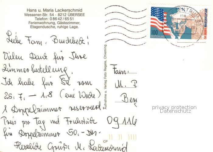 73645957 alte Postkarte uebersee Gaestehaus Pension Lackerschmid postalisch gelaufen Erhaltung siehe scans [FriedD77] KatCode: 11110009189159