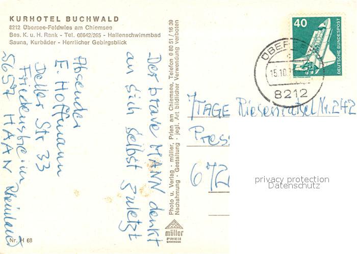 73086329 alte Postkarte uebersee Kurhotel Buchwald postalisch gelaufen Erhaltung siehe scans [KathaD81] KatCode: 11110009189159