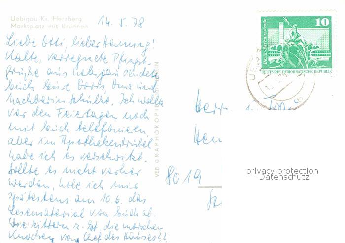 72645868 alte Postkarte Uebigau-Wahrenbrueck Marktplatz mit Brunnen postalisch gelaufen Erhaltung siehe scans [LiesaD40] KatCode: 11110012062500