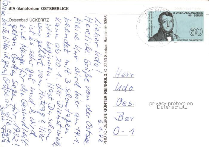 alte Postkarte ueckeritz Usedom BFA Sanatorium Ostseeblick postalisch gelaufen Erhaltung siehe scans