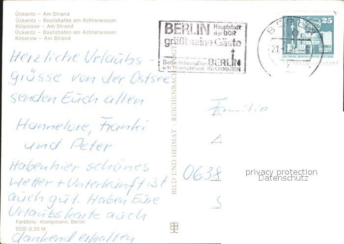72610435 alte Postkarte ueckeritz Usedom Bootshafen Koelpinsee Koserow postalisch gelaufen Erhaltung siehe scans [AndreD76] KatCode: 11110013059096