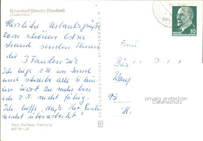 72076944 alte Postkarte ueckeritz Usedom Fischerhuette postalisch gelaufen Erhaltung siehe scans KatCode: 11110013059096
