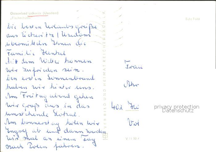 72328744 alte Postkarte ueckeritz Usedom Fischerhuette Cafe Tanzbar postalisch gelaufen Erhaltung siehe scans KatCode: 11110013059096