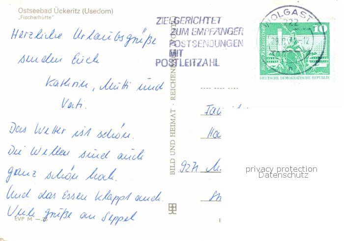 72728607 alte Postkarte ueckeritz Usedom Fischerhuette Cafe Tanzbar postalisch gelaufen Erhaltung siehe scans [FriedD77] KatCode: 11110013059096