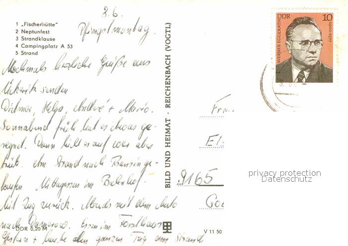 72704426 alte Postkarte ueckeritz Usedom Fischerhuette Neptunfest Strandklause Campingplatz A53 Strand postalisch gelaufen Erhaltung siehe scans [FriedD77] KatCode: 11110013059096