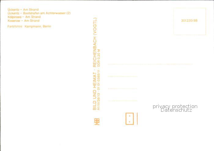 72548568 ueckeritz Usedom Koelpinsee Koserow Strand postalisch nicht gelaufen Erhaltung siehe scans [LiesaD40 kv019box] KatCode: 11110013059096