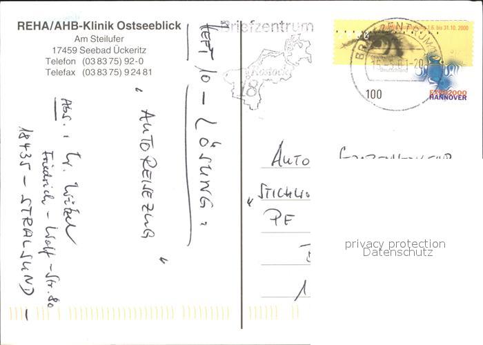 72414918 alte Postkarte ueckeritz Usedom Reha Klinik Ostseeblick postalisch gelaufen Erhaltung siehe scans KatCode: 11110013059096