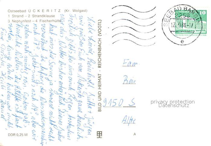 73036735 alte Postkarte ueckeritz Usedom Strand Fischerhuette Neptunfest Strandklause postalisch gelaufen Erhaltung siehe scans [KathaD81] KatCode: 11110013059096