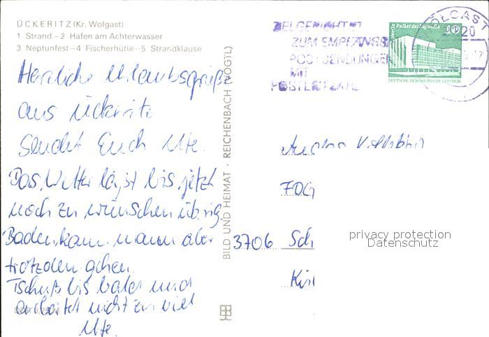 72432220 alte Postkarte ueckeritz Usedom Strand Hafen Achterwasser Neptunfest Strandklause postalisch gelaufen Erhaltung siehe scans KatCode: 11110013059096