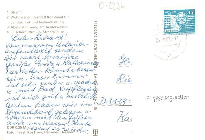 73045522 alte Postkarte ueckeritz Usedom Strand Wohnwagen VEB Kombinat Abendstimmung Achterwasser postalisch gelaufen Erhaltung siehe scans [KathaD81] KatCode: 11110013059096