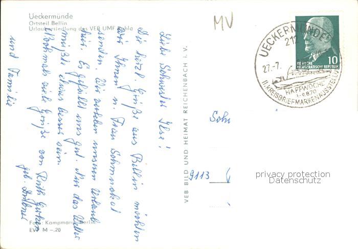 72074558 alte Postkarte ueckermuende Bellin Feriensiedlung postalisch gelaufen Erhaltung siehe scans KatCode: 11110013062059