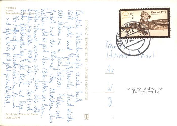 72128361 alte Postkarte ueckermuende Haffbad Hafen Sowjet Ehrenmal postalisch gelaufen Erhaltung siehe scans KatCode: 11110013062059