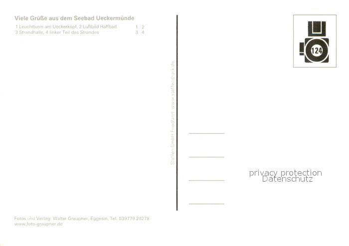 73716834 ueckermuende Haffbad Luftbild Leuchtturm Fahrgastschiff Strandhalle Strand postalisch nicht gelaufen Erhaltung siehe scans [FriedD77] KatCode: 11110013062059