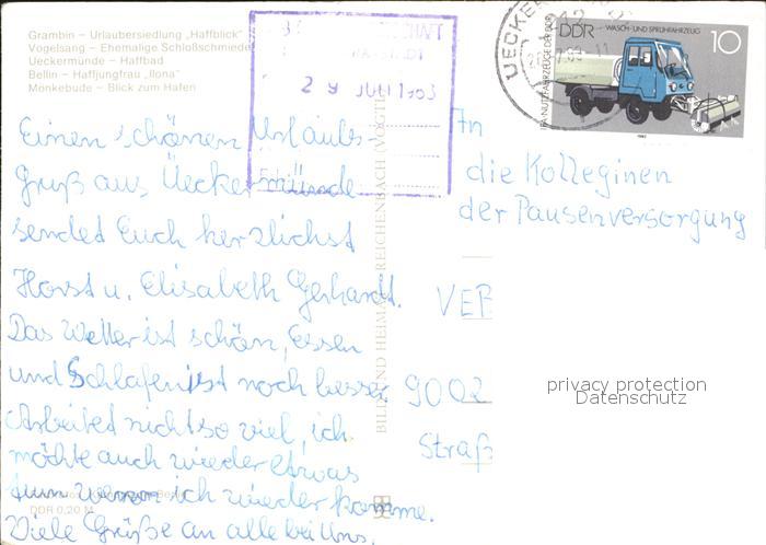 72373451 alte Postkarte Ueckermuende Mecklenburg Vorpommern Am kleinen Haff Grambin Urlaubersiedlung Haffblick Bellin Moenckebude postalisch gelaufen Erhaltung siehe scans KatCode: 11110013062059