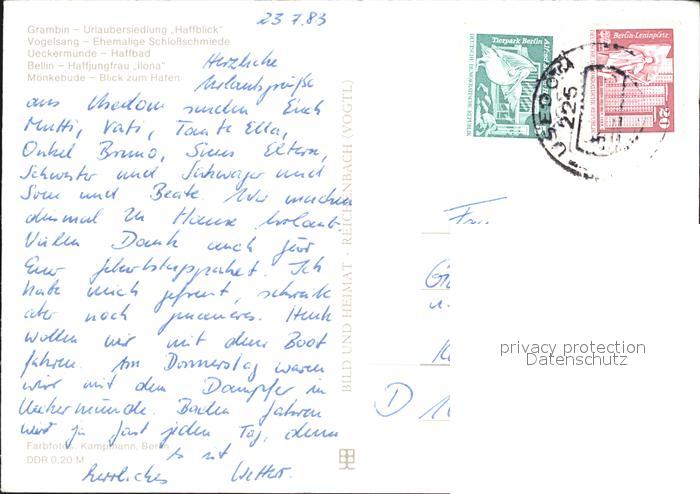 72461969 alte Postkarte Ueckermuende Mecklenburg Vorpommern Grambin Vogelsang Schlossschmiede Bellin Haffjungfrau Ilona postalisch gelaufen Erhaltung siehe scans KatCode: 11110013062059