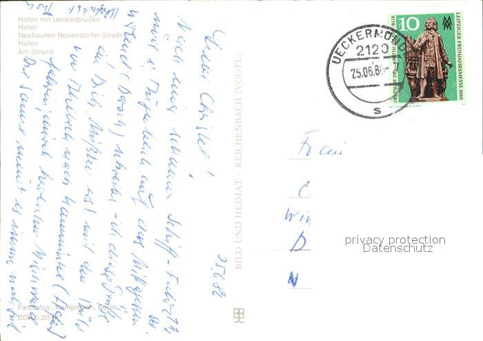 72037545 alte Postkarte Ueckermuende Mecklenburg Vorpommern Hafen Neubauten Neuendorfer Strasse Strand postalisch gelaufen KatCode: 11110013062059