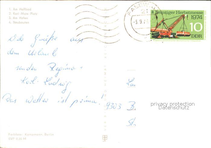 72383035 alte Postkarte Ueckermuende Mecklenburg Vorpommern Haffbad Karl-Marx-Platz Hafen postalisch gelaufen Erhaltung siehe scans KatCode: 11110013062059