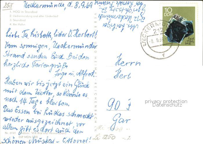 alte Postkarte Ueckermuende Mecklenburg Vorpommern HOG-Strandbad Hafen Strandbad postalisch gelaufen Erhaltung siehe scans