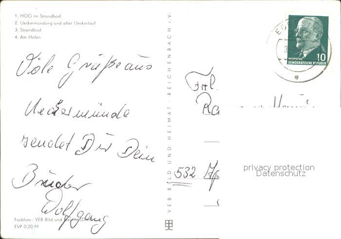 72557231 alte Postkarte Ueckermuende Mecklenburg Vorpommern HOG Strandbad Ueckermuendung alter Ueckerlauf Hafen postalisch gelaufen Erhaltung siehe scans [KathaD79] KatCode: 11110013062059