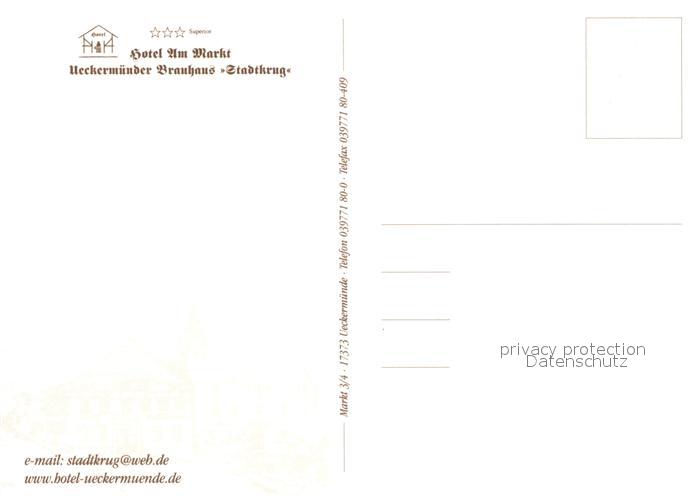 73334935 Ueckermuende Mecklenburg Vorpommern Hotel am Markt Strand Brauhaus Stadtkrug Kirche Hafen postalisch nicht gelaufen Erhaltung siehe scans [LiesaD40] KatCode: 11110013062059