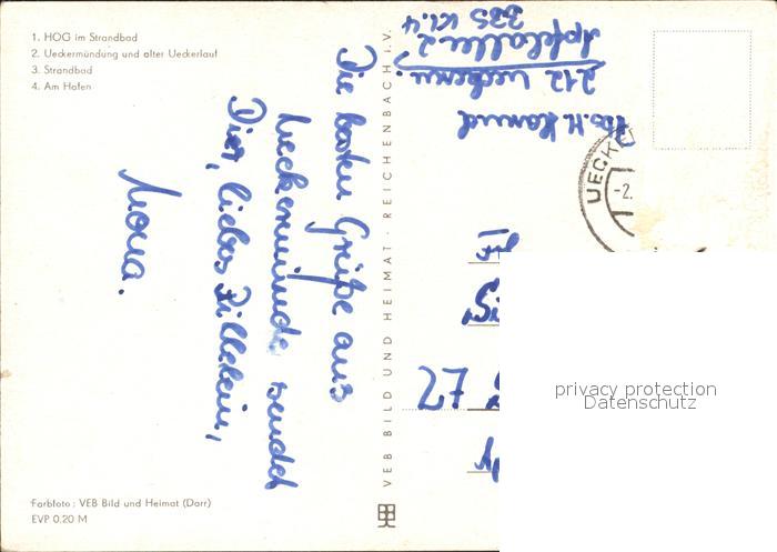 72331999 alte Postkarte Ueckermuende Mecklenburg Vorpommern Strand Hafen Ueckermuendung postalisch gelaufen Erhaltung siehe scans KatCode: 11110013062059