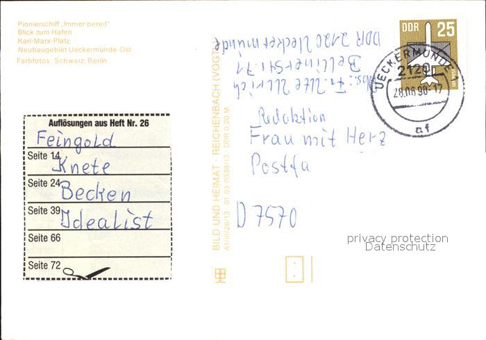 72458866 alte Postkarte Ueckermuende Mecklenburg Vorpommern — postalisch gelaufen Erhaltung siehe scans KatCode: 11110013062059