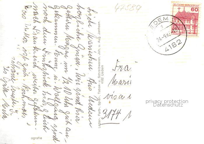 73867741 alte Postkarte Uedem St. Laurentius Kirche Turmwall Schuesterken Denkmal An der Lohstrasse Ehrenmal postalisch gelaufen Erhaltung siehe scans [FriedD77] KatCode: 11110005154056
