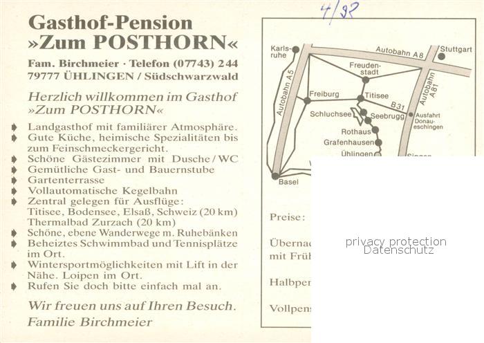 73642786 uehlingen-Birkendorf Gasthof Pension Zum Posthorn Landschaftspanorama Alpenblick Fliegeraufnahme postalisch nicht gelaufen Werbekarte (keine Postkarte) Erhaltung siehe scans [FriedD77] KatCode: 11110008337128