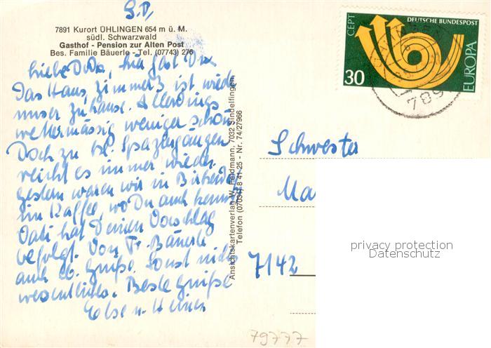 73786434 alte Postkarte uehlingen-Birkendorf Gasthof Pension zur alten Post Kurort im Schwarzwald postalisch gelaufen Erhaltung siehe scans [FriedD77] KatCode: 11110008337128