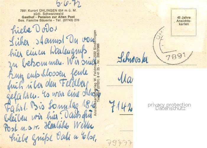 73786435 alte Postkarte uehlingen-Birkendorf Gasthof Pension zur alten Post Kurort im Schwarzwald postalisch gelaufen Erhaltung siehe scans [FriedD77] KatCode: 11110008337128